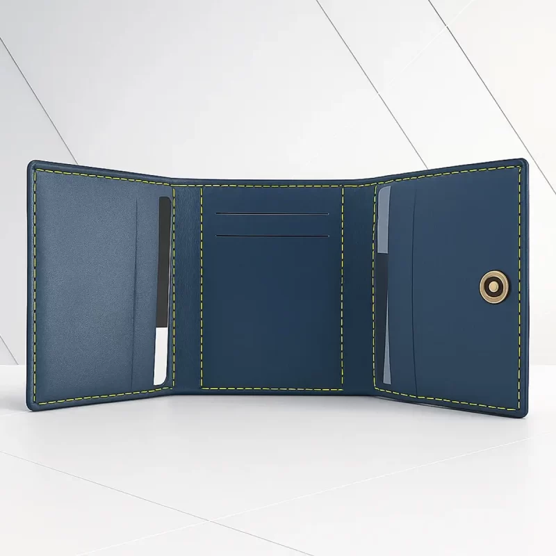 Carry your identity—literally. This elegant 3-fold wallet in classic blue keeps your essentials organized while showcasing your name on a premium metal nameplate. The slim tri-fold design slips easily into pockets, with neat contrast stitching that adds a refined finish. A thoughtful everyday upgrade and a sure-shot gift for birthdays, anniversaries, or him-self treats.