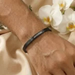 This Black Personalized Engraved Name Bracelet is a stylish and eye-catching piece of jewelry. The combination of gleaming black, clean engraving, and the wide band makes it a true statement piece. It would make a wonderful gift for someone special or a treasured addition to any jewelry collection.