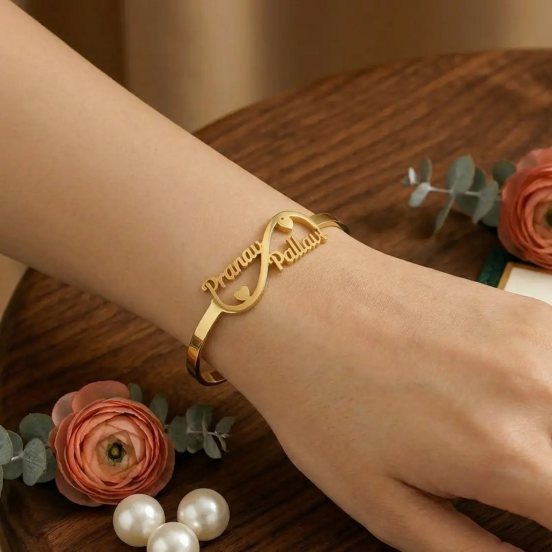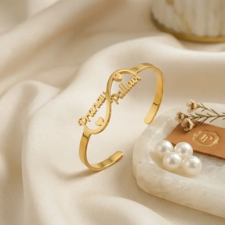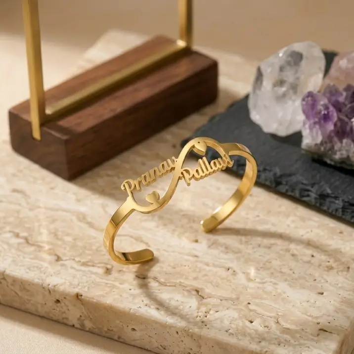 Celebrate your forever bond with this waterproof customized couple name infinity bracelet, beautifully designed with two personalized names and elegant double heart details. The infinity design symbolizes endless love, making this bracelet a meaningful keepsake for couples who want to carry their special connection every day.