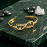 This personalized couple name bracelet is crafted in a stylish open cuff design that looks modern, elegant, and romantic. Since it is waterproof, it is suitable for regular daily wear and keeps its charm for longer, making it both fashionable and practical.