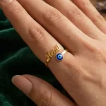 The evil eye charm is a traditional symbol believed to protect the wearer from negative energy and bad luck, blending cultural significance with modern jewelry design. A perfect blend of sentiment and style, this ring is a beautiful reminder of the special people in your life.
