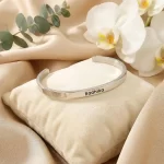 This elegant silver name bracelet features a unique design with a personalized name engraved. A perfect symbol of love and commitment, this bracelet is a thoughtful and meaningful gift for couples celebrating anniversaries, or engagements, or simply wanting to express their love.