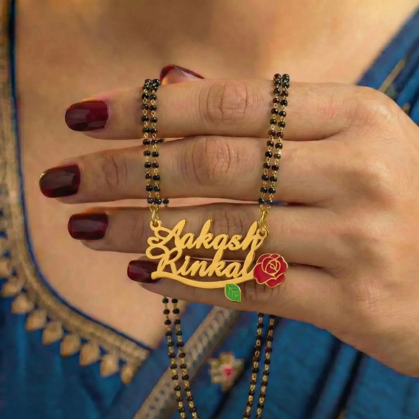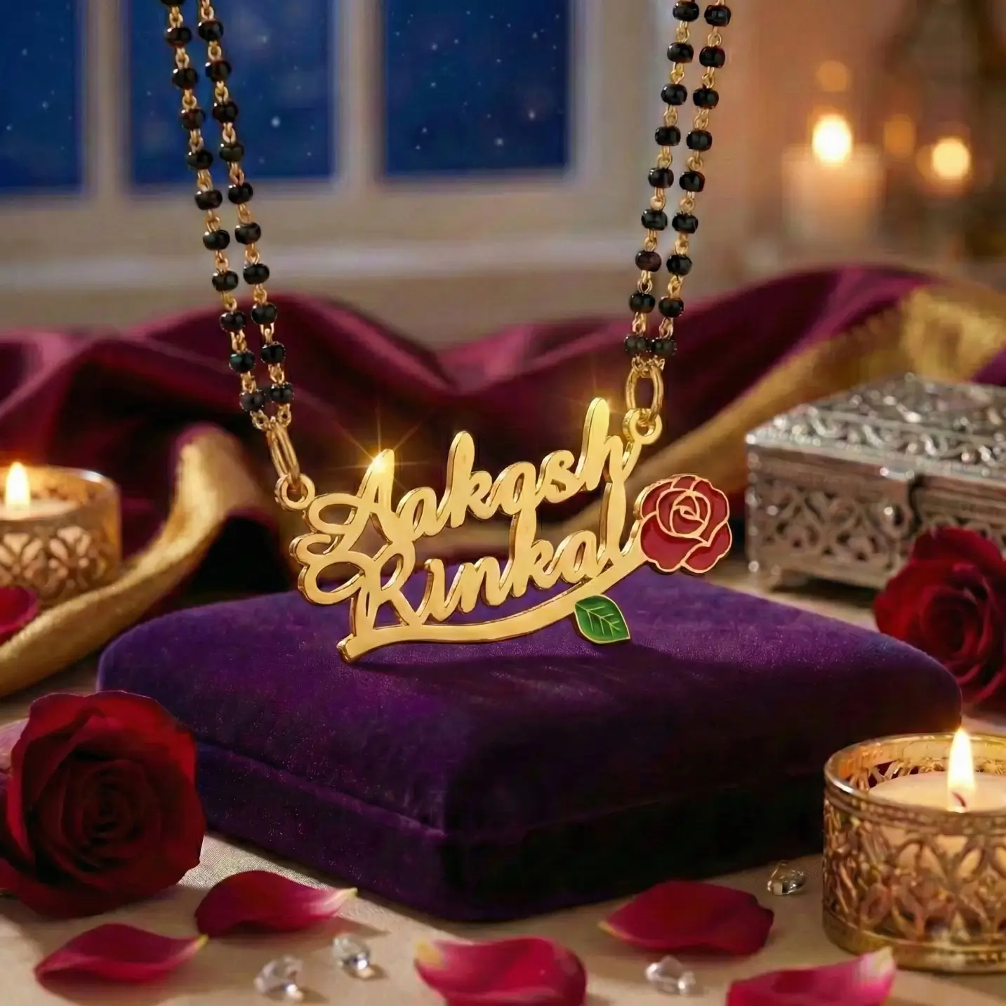 Celebrate your love with the exquisite Rose Couple Name Necklace, a stunning piece of personalized jewelry that symbolizes your enduring bond.