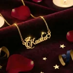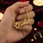 Product: Gold-Plated Brass Name Necklace with Crown Design