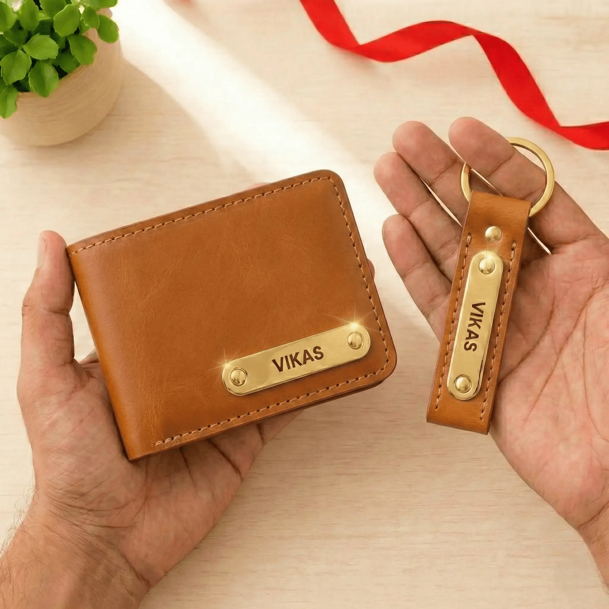 Tan Premium Wallet And Keychain Combo